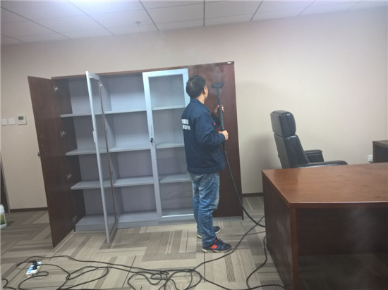我公司施工人員對油漆味家具表面進行高溫熏蒸除油漆味作業